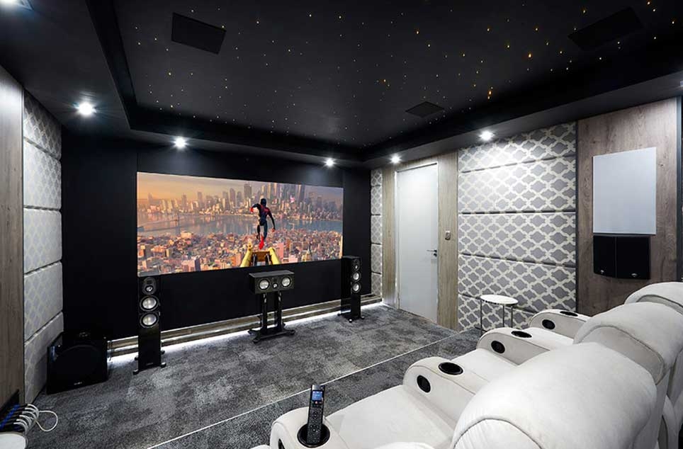 Full home cinema beyond the big screen experience! Superior screens and 360-degree audio that is felt in explosive detail. Complete home cinema installations including, conceptualisation design and layout, cinema seating, acoustic design and consultation, 3D design renderings, installation and programming, audio-visual equipment calibration to ensure the highest levels of performance. A single touch of a button will recline your seats, dim the overheads and activate mood lighting, set the ambient temperature and start the movie!